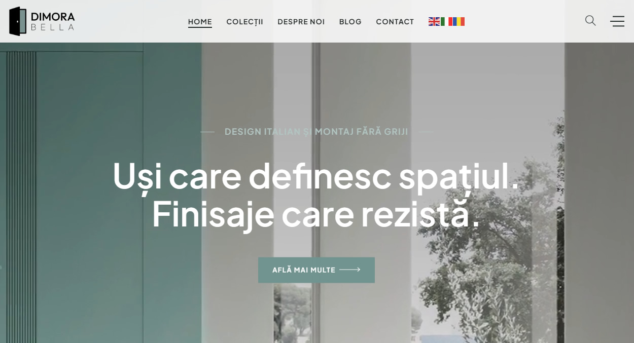 Dimora Bella aduce în România uși italiene premium, realizate din lemn selectat, cu balamale ascunse și finisaje elegante.